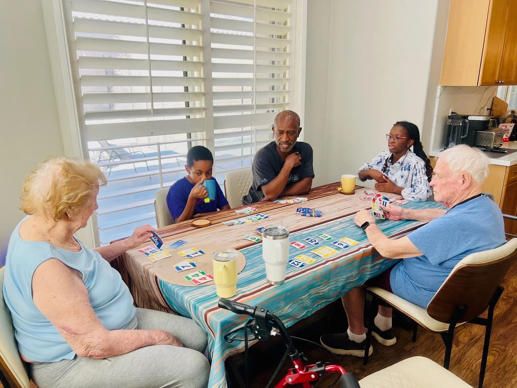 The "Shadow Ranch" Experience: Our new shaded patio has become the heart of the home for music and socializing. Plus, my kids (10 and 13) are frequently here playing Scrabble or Phase 10 with the residents. My son, Alexander, has even officially been "hired" by the residents as the head coffee maker!